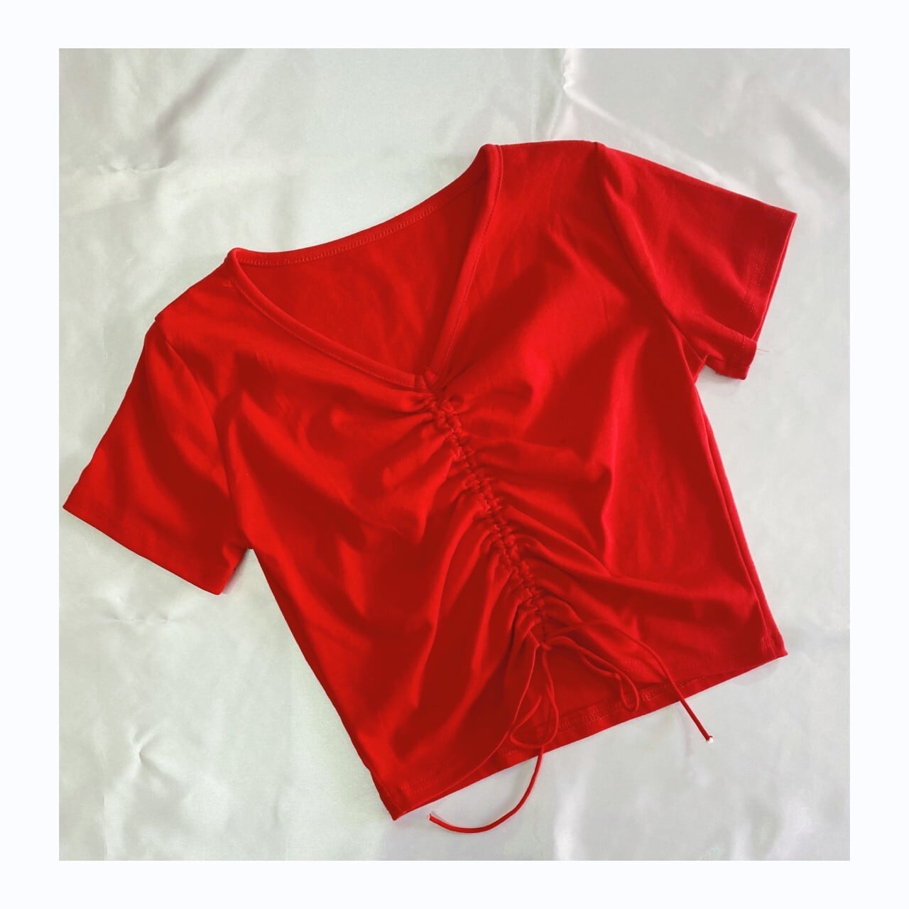リボンtシャツ ギャザーTシャツ トップス 韓国 韓国ファッション Koreafashion Korea