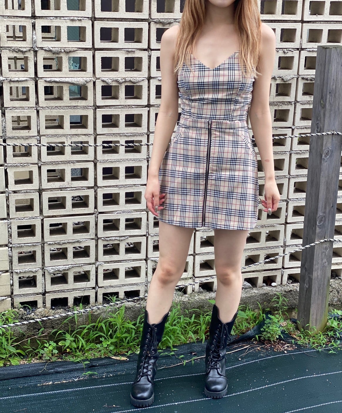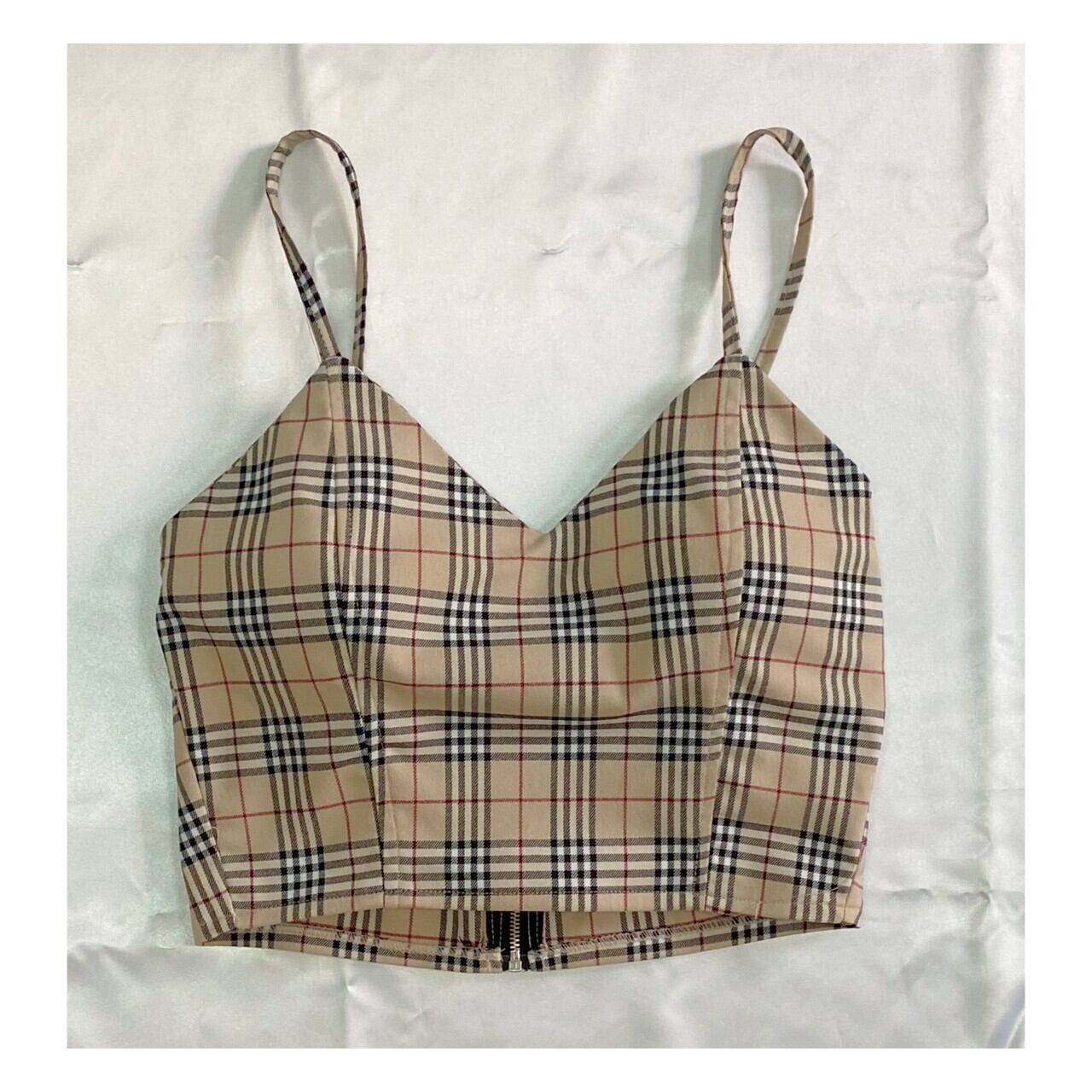 ビスチェ&スカートSET セットアップ ハウスチェックセットアップ ビスチェ ミニスカート 韓国ファッション Koreafashion