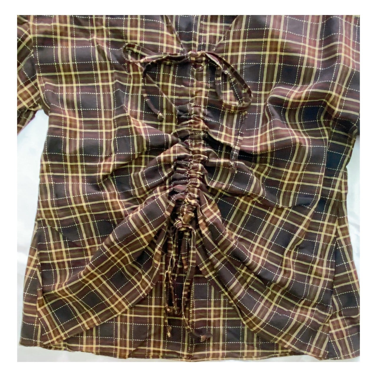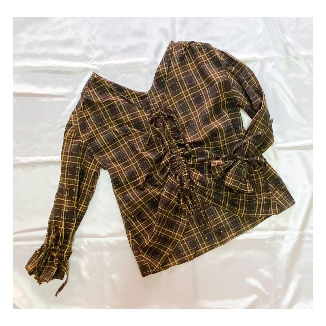 トップス チェックブラウス ギャザートップス 韓国 韓国ファッション